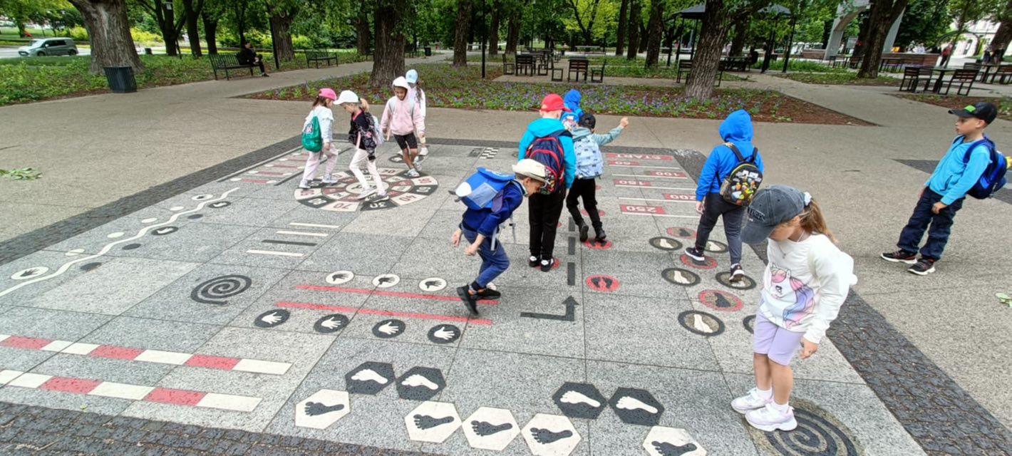 Naszą przygodę rozpoczęliśmy na słynnej ulicy Piotrkowskiej – najdłuższy deptak w Polsce zrobił na nas ogromne wrażenie! Spacerując wzdłuż pięknych kamienic, dotarliśmy do wyjątkowego miejsca – Pasażu Róży. Ta niezwykła kamienica, ozdobiona tysiącami kawałków luster, wyglądała jak z bajki. W słońcu mieniła się wszystkimi kolorami, a my z zachwytem robiliśmy sobie zdjęcia w odbiciach. Po artystycznych wrażeniach przyszedł czas na coś dla ciała – udaliśmy się do Manufaktury, gdzie czekał na nas... McDonald’s! Po pysznym posiłku pełnym frytek, burgerów i szerokich uśmiechów nadszedł czas na sportową rywalizację. W kręgielni Drakula bawiliśmy się wyśmienicie – emocji i śmiechu nie brakowało, a każdy rzut kulą wywoływał prawdziwe emocje!