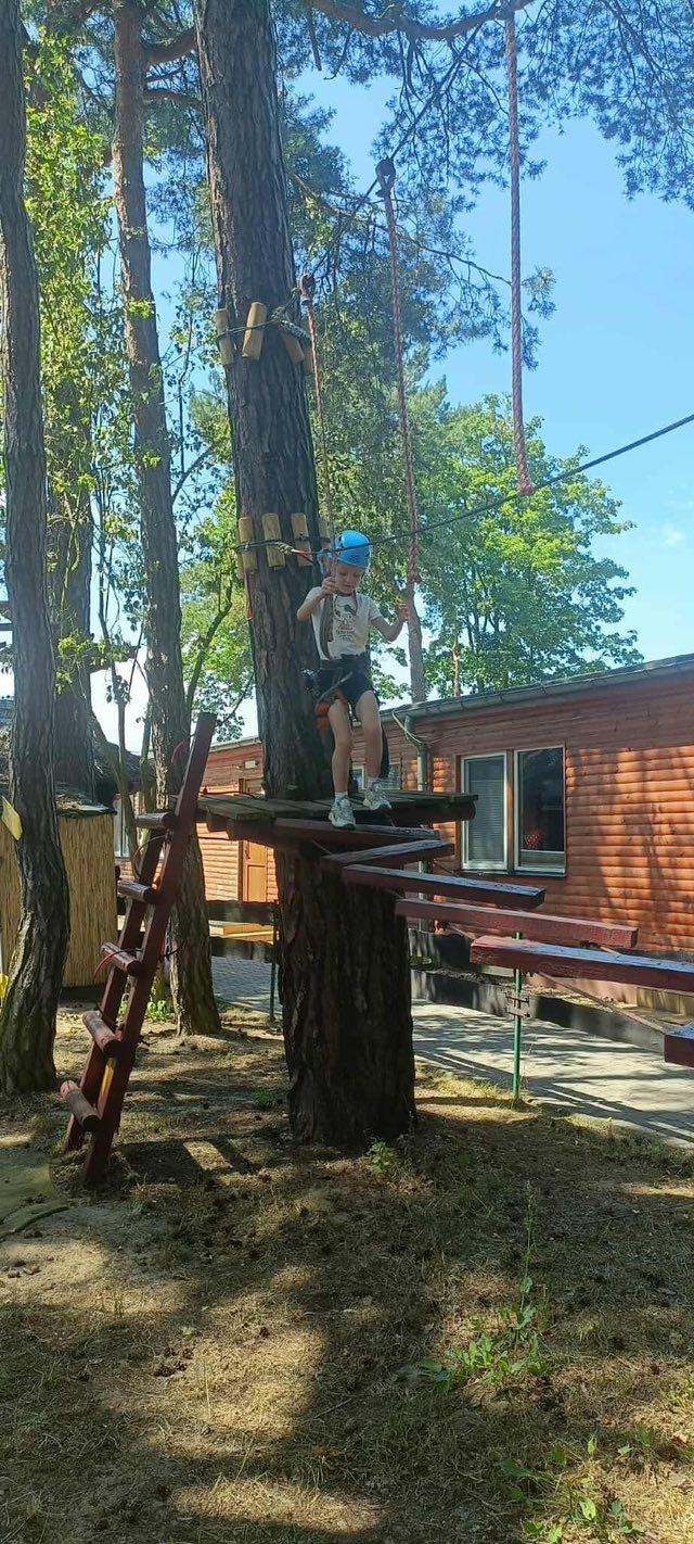 🌲 Czwartek to wyprawa do parku linowego w Tomaszowie Mazowieckim! Dzieci wspinały się po linach jak małe małpki 🐒, a potem szalały na gokartach 🏎️ i placu zabaw 🛝 – bo przecież energii nigdy za wiele (prawda? 😅).