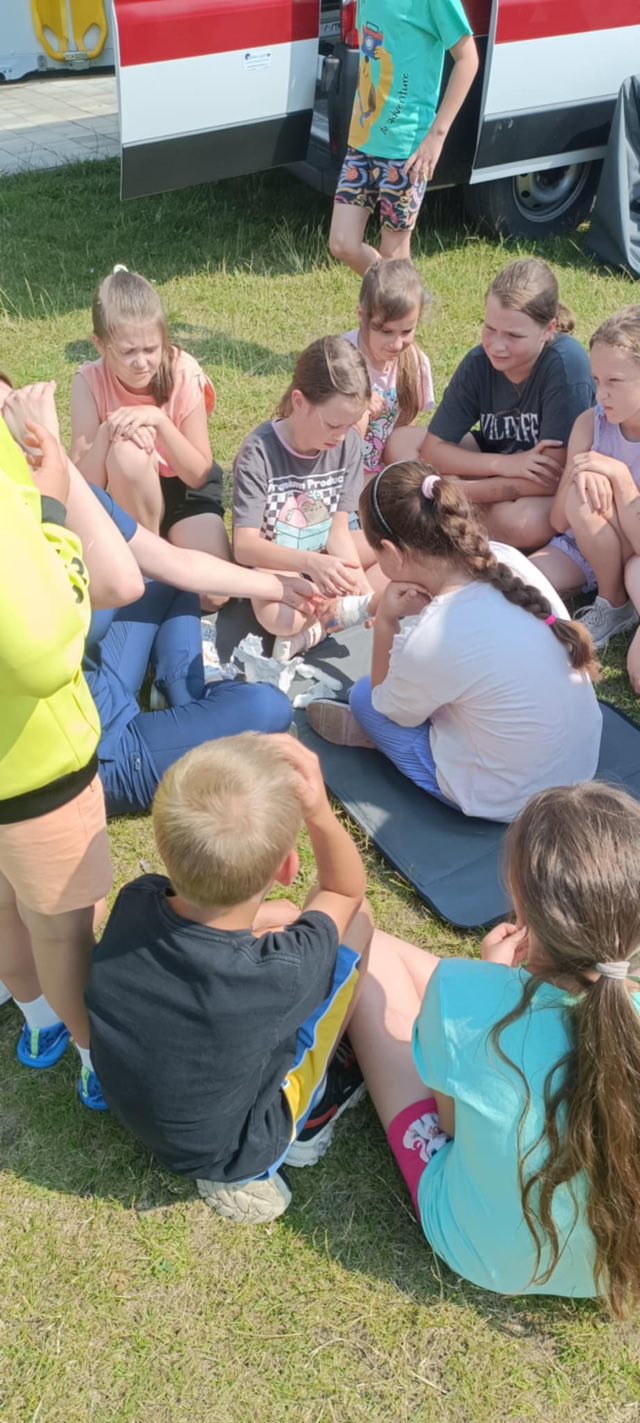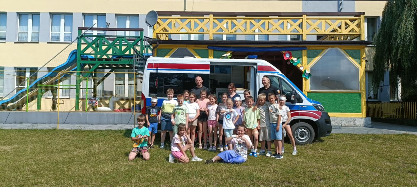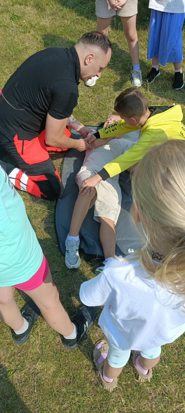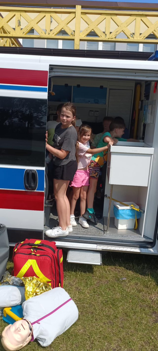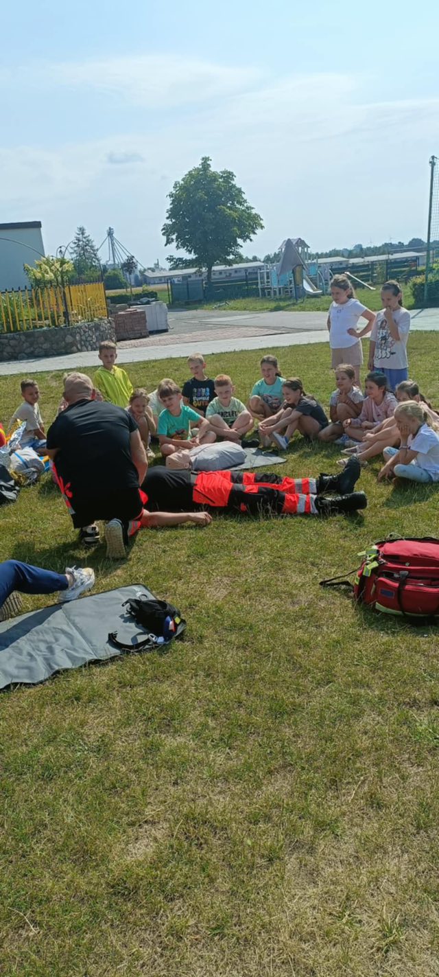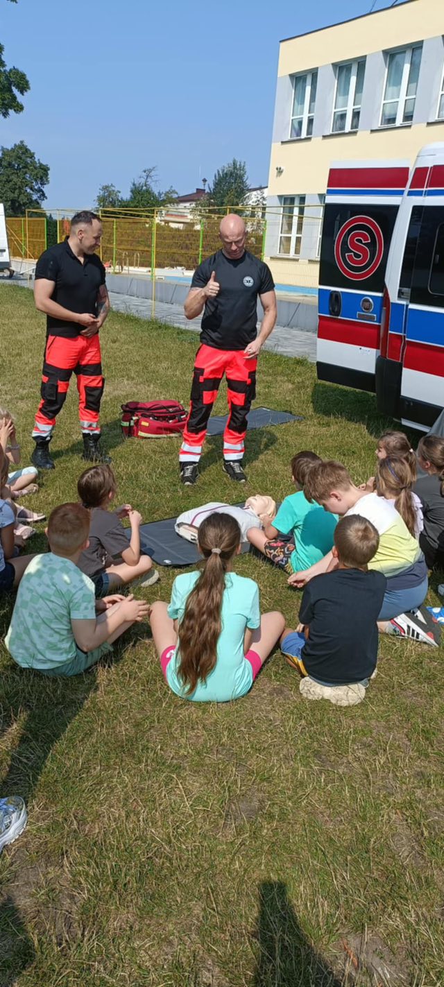 Dziś dzieci z półkolonii w szkole w Rękoraju miały wyjątkowych gości – ratowników medycznych z fundacji Safety of life👩‍⚕️🧑‍⚕️