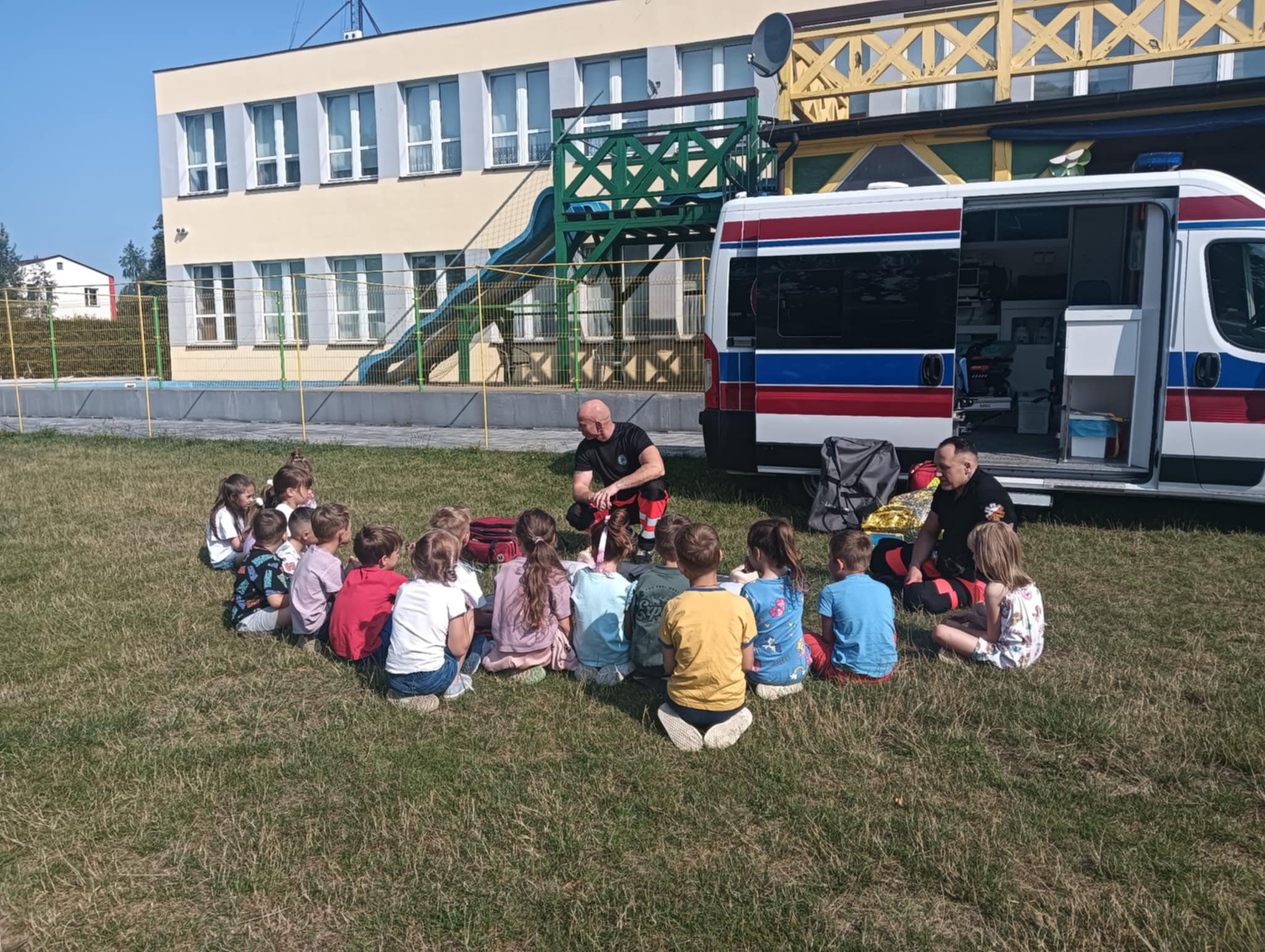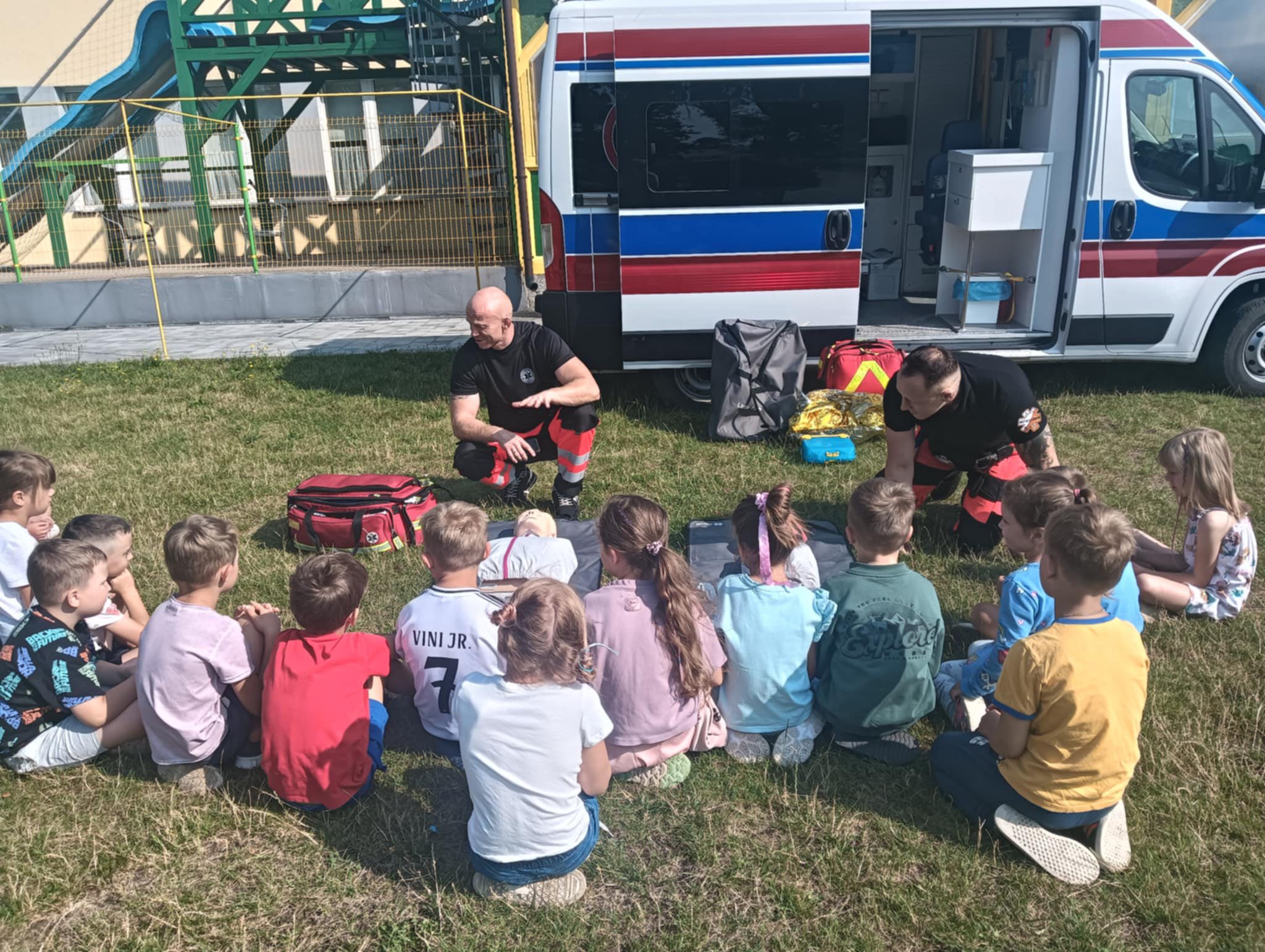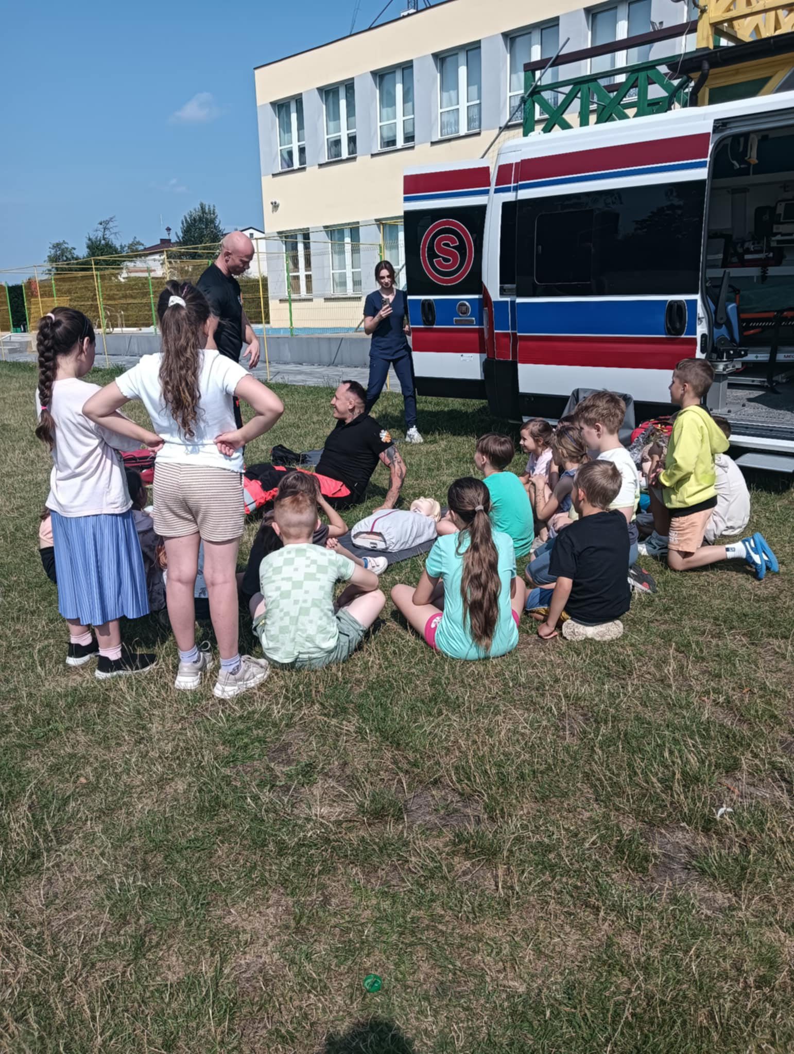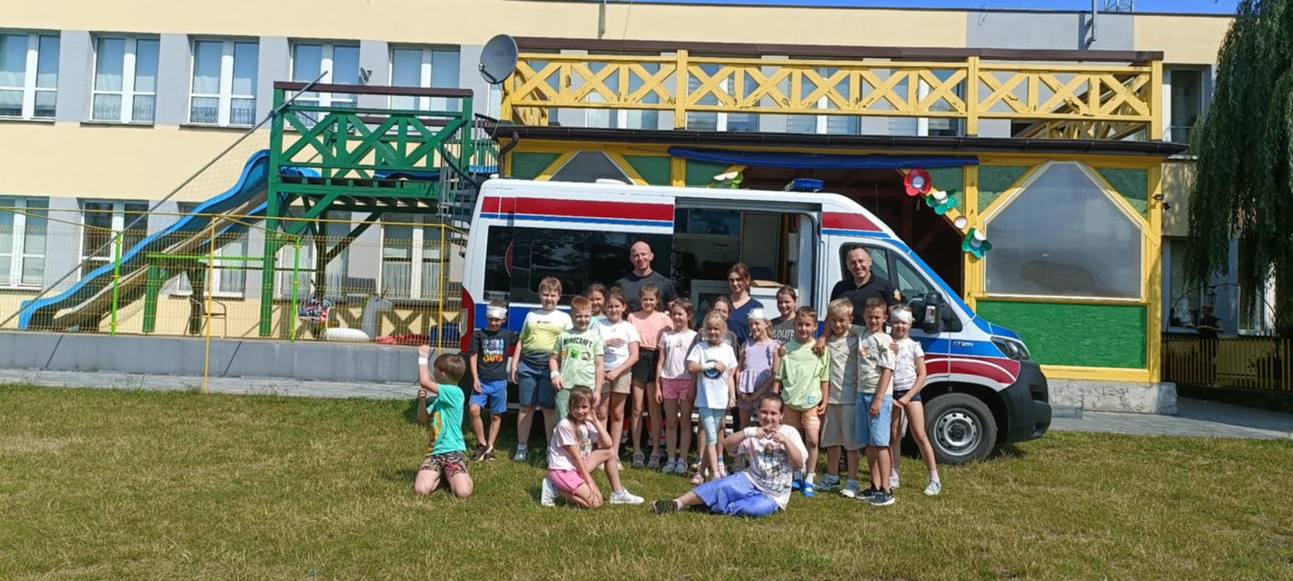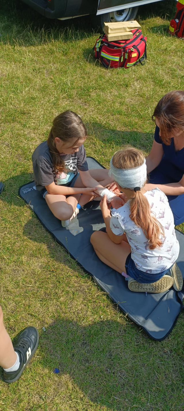 Dziś dzieci z półkolonii w szkole w Rękoraju miały wyjątkowych gości – ratowników medycznych z fundacji Safety of life👩‍⚕️🧑‍⚕️