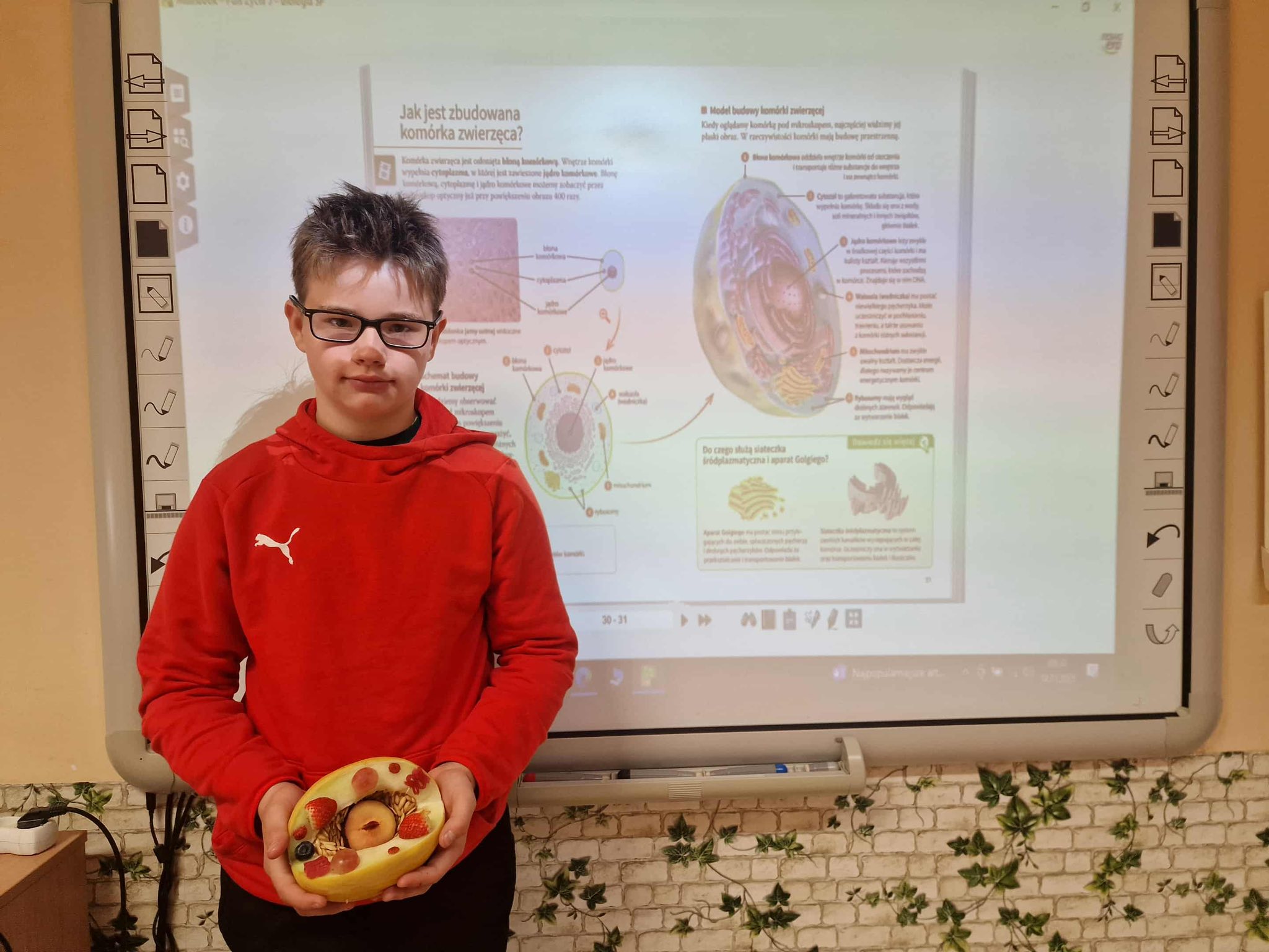 Uczniowie klasy piątej przygotowali efektowne modele komórek roślinnych, zwierzęcych i grzybowych. Prace powstały z wykorzystaniem najróżniejszych materiałów – od plasteliny, papieru i kartonu, aż po… produkty spożywcze! 🍬🥦