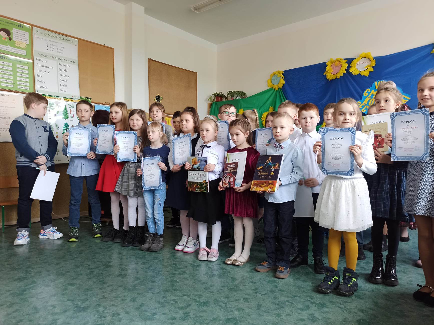 31. marca odbył się Gminny Konkurs Recytatorski, którego organizatorem była Szkoła Podstawowa w Babach. Do udziału w tym konkursie wybrano pięcioro uczniów z każdej szkoły. Z naszej szkoły wiersze polskich poetów zaprezentowali: Izabela Adamiec -kl. 2 Nadia Jargan - kl. 2 Filip Choja - kl. 1 Amelia Glinka - kl. 1 Alicja Walas - kl. 1. Wszystkie dzieci popisały się swoim talentem recytatorskim. Jury miało twardy orzech do zgryzienia, ponieważ poziom był naprawdę wyrównany. Dlatego zdecydowali się nie przyznawać miejsc, tylko wyróżnienia dla najlepszych dzieci. Takie właśnie wyróżnienie otrzymała Alicja Walas z wierszem "Daktyle" Danuty Wawilow. Pozostałe dzieci otrzymały dyplomy i upominki za udział w konkursie. Gratulacje dla wszystkich.