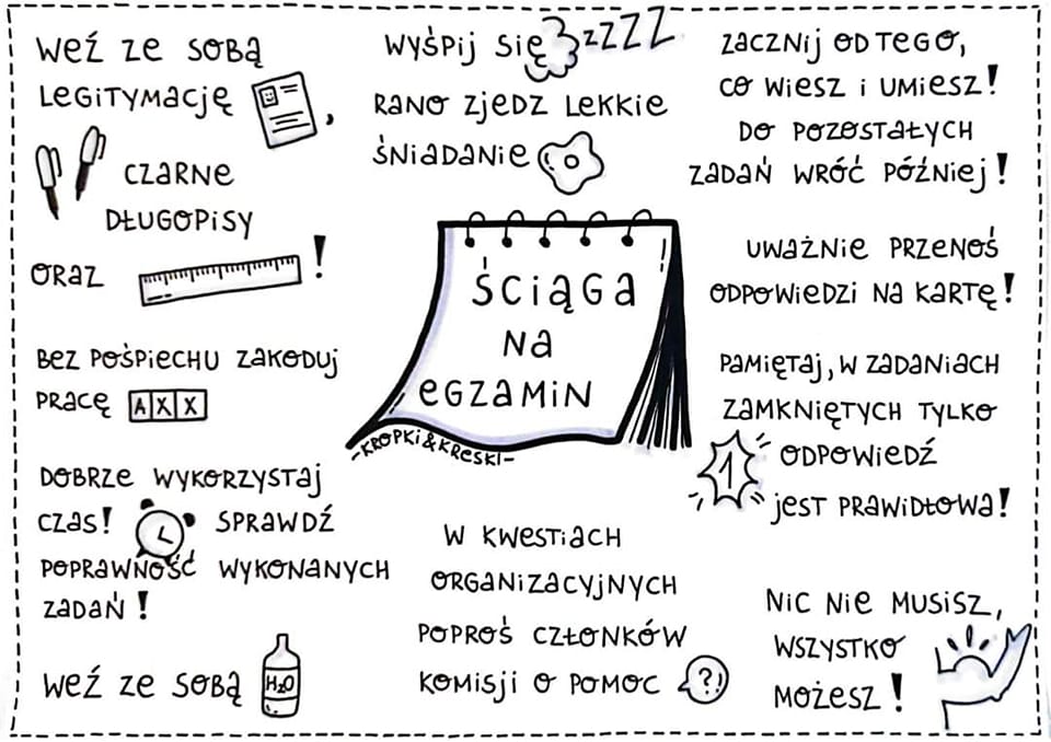W dniach 23.05-25.05.2023 odbędzie się ogólnopolski egzamin ósmoklasisty. Z naszej szkoły napisze go 8. uczniów, za których już od dziś trzymajmy kciuki. Poniżej wrzucamy kilka przydatnych informacji dla każdego z nich.
