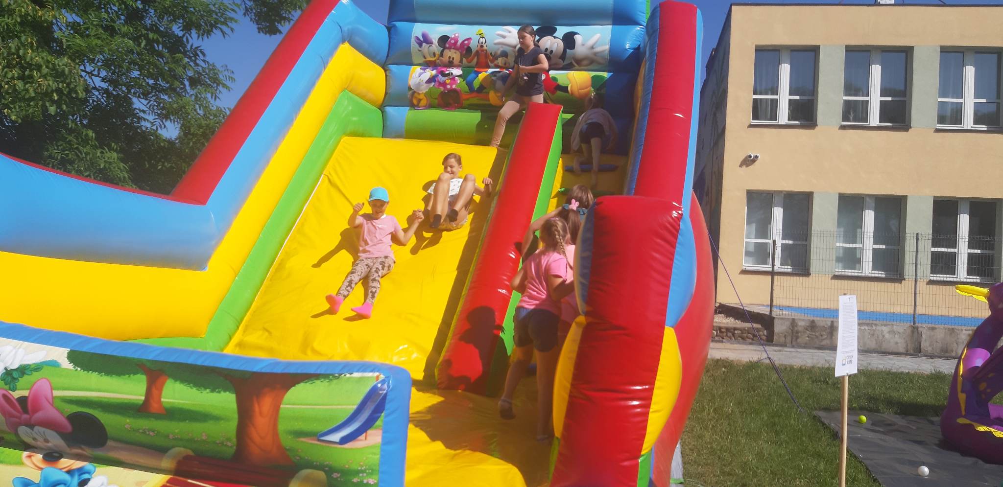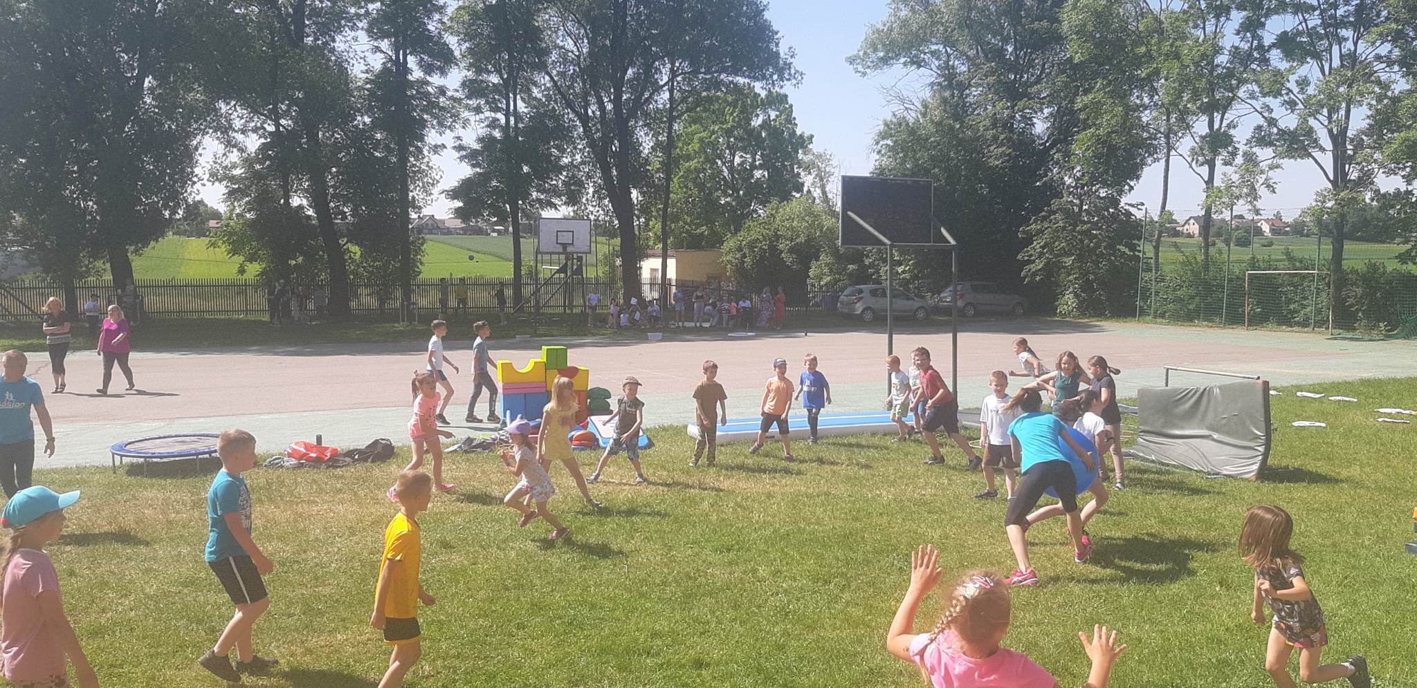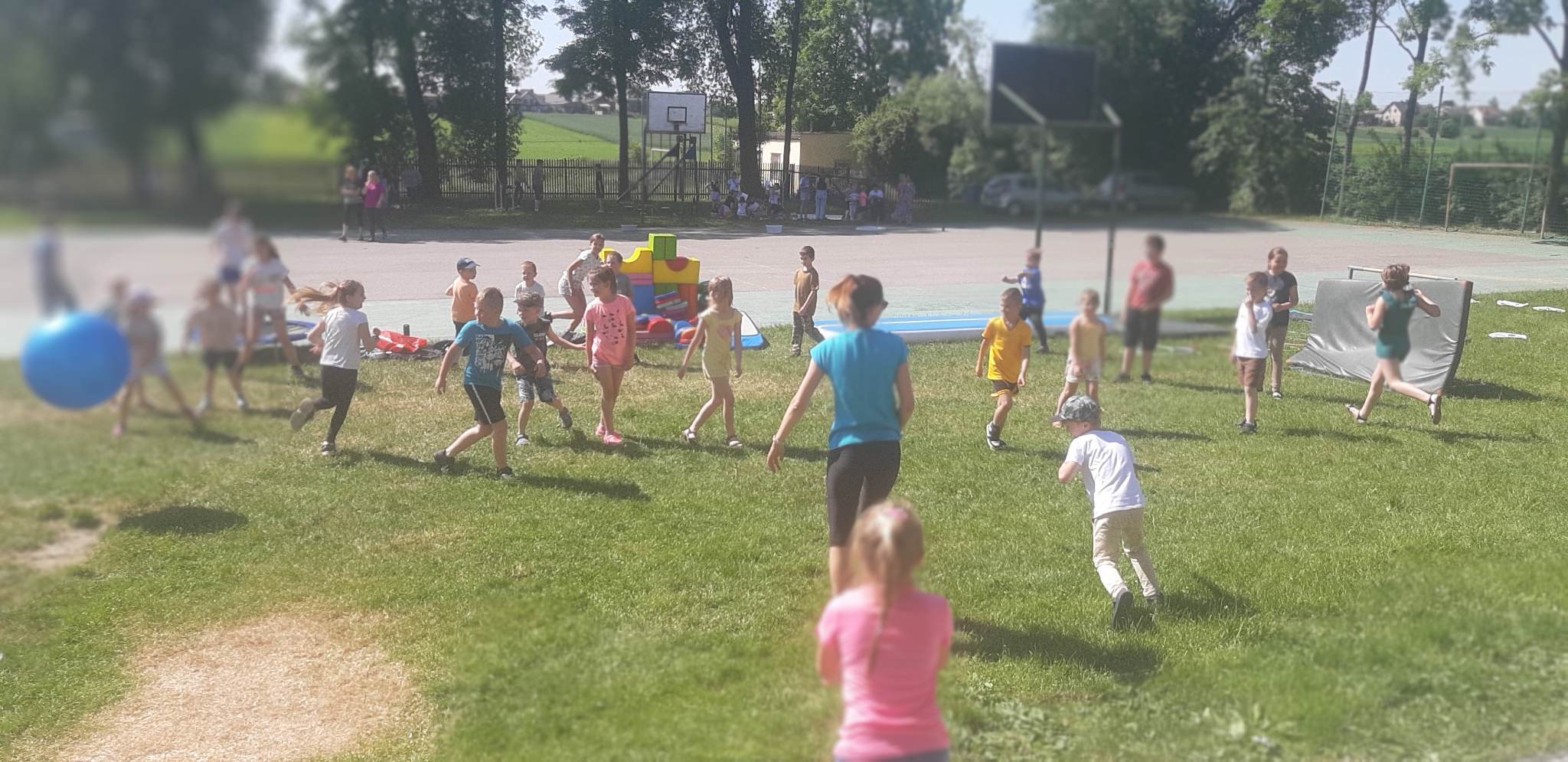 Dnia 1. czerwca w naszej szkole świętowaliśmy Dzień Dziecka, pogoda dopisała więc na powietrzu odbywały się przez cały dzień konkursy i zabawy dla wszystkich dzieci. Ciocia Aneta z Psocimy przygotowała dla dzieci mnóstwo zabaw i gier. Dzieciaki mogły poskakać na dmuchańcach i zrobić sobie tatuaże brokatowe. Zaprzyjaźniony z młodszymi dziećmi Kasjan zorganizował konkurencje sportowe i gry nawet dla starszej grupy.