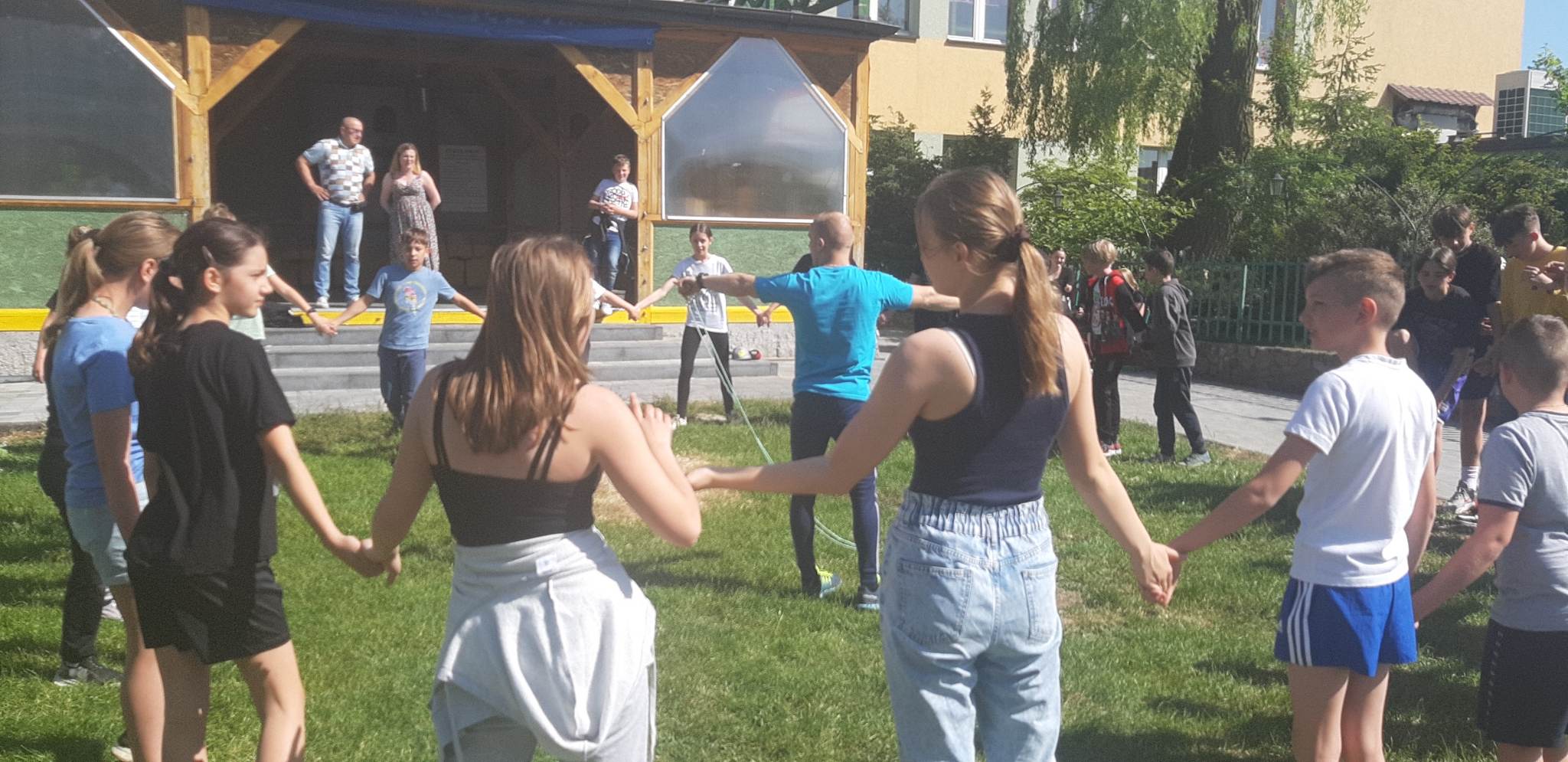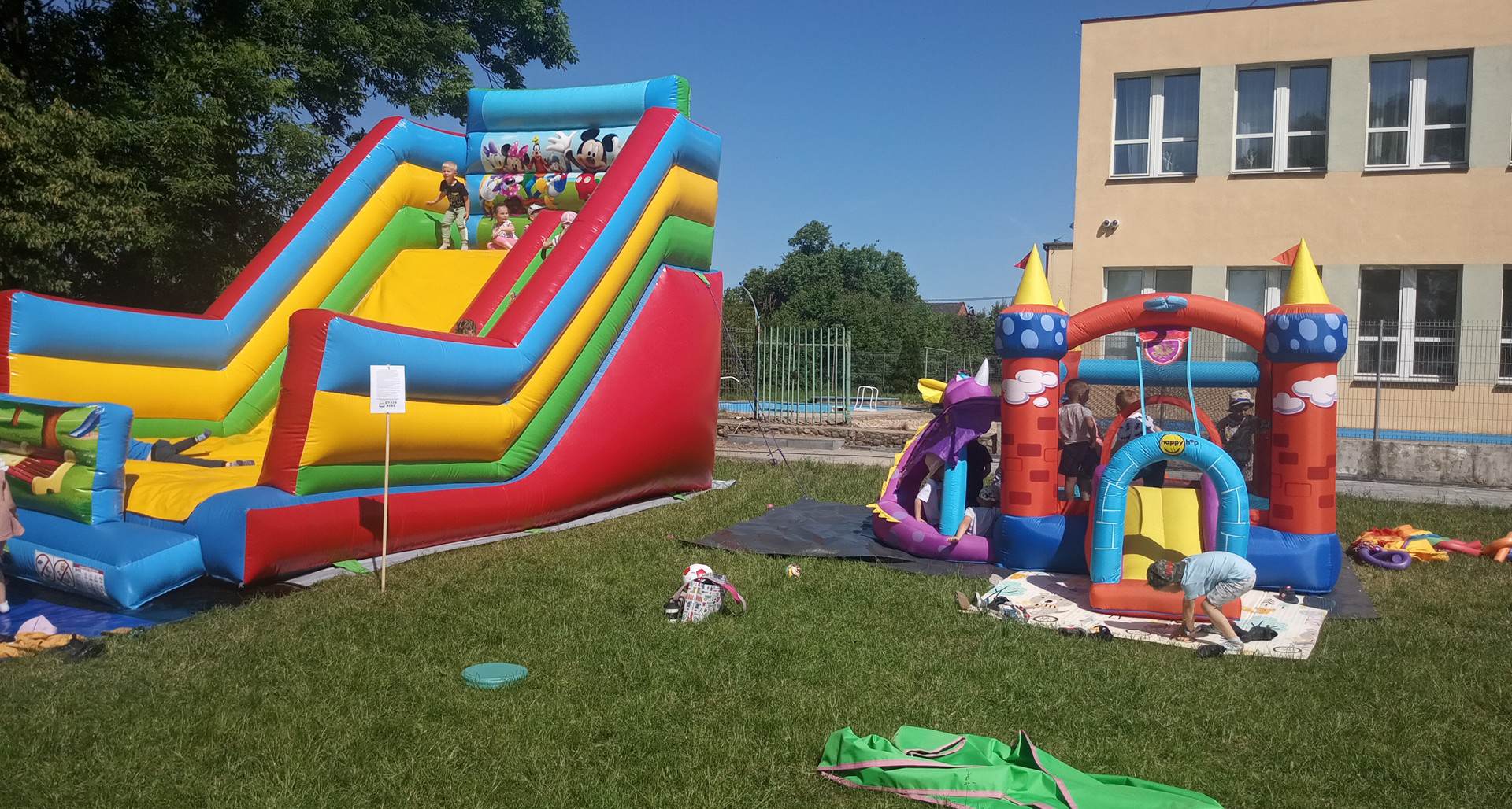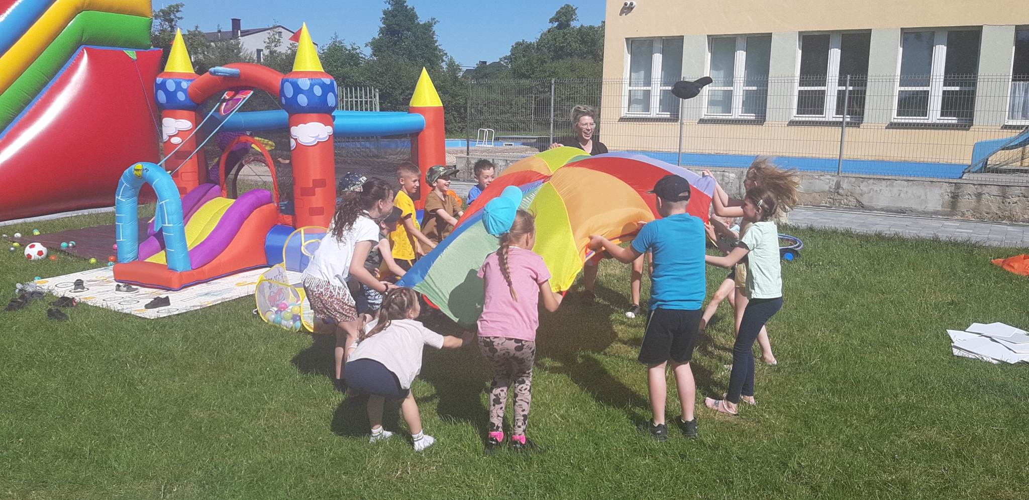 Dnia 1. czerwca w naszej szkole świętowaliśmy Dzień Dziecka, pogoda dopisała więc na powietrzu odbywały się przez cały dzień konkursy i zabawy dla wszystkich dzieci. Ciocia Aneta z Psocimy przygotowała dla dzieci mnóstwo zabaw i gier. Dzieciaki mogły poskakać na dmuchańcach i zrobić sobie tatuaże brokatowe. Zaprzyjaźniony z młodszymi dziećmi Kasjan zorganizował konkurencje sportowe i gry nawet dla starszej grupy.