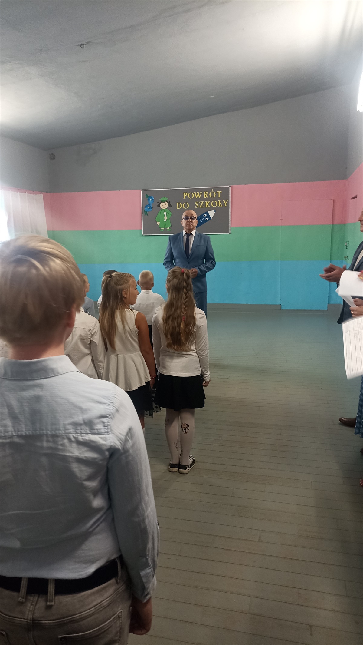 Dnia 4-09-2023r. rozbrzmiał pierwszy dzwonek w nowym roku szkolnym. Uczniowie zostali powitani przez Pana Dyrektora, oraz zostali przedstawieni nowi nauczyciele: