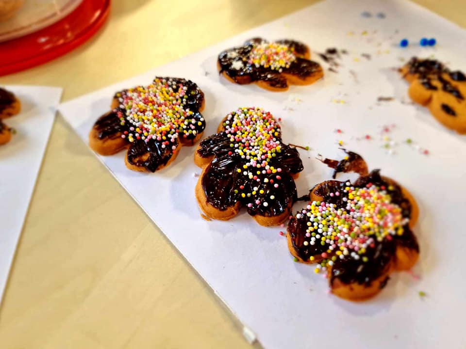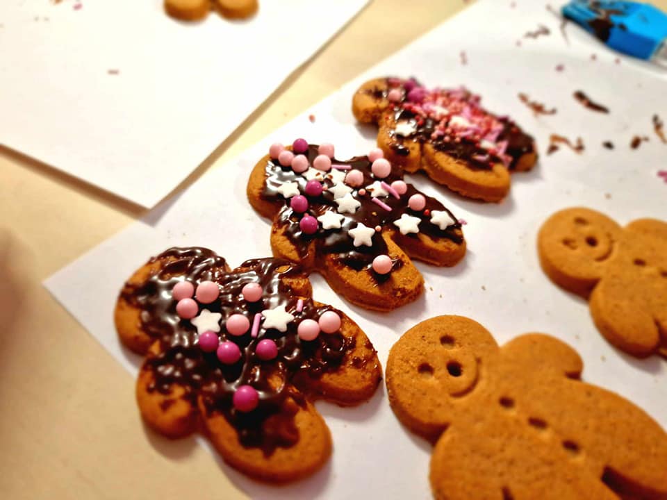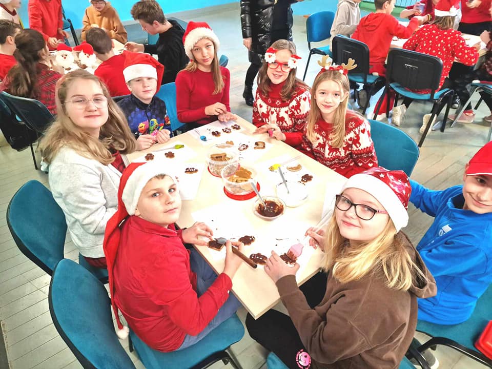 W tym roku Mikołajki spędziliśmy inaczej niż zawsze. Zamiast wymieniać się prezentami wspólnie dekorowaliśmy pierniczki. Było malowanie świątecznych dekoracji na rękach. Nie obyło się też bez śpiewania świątecznych piosenek po polsku i po angielsku.